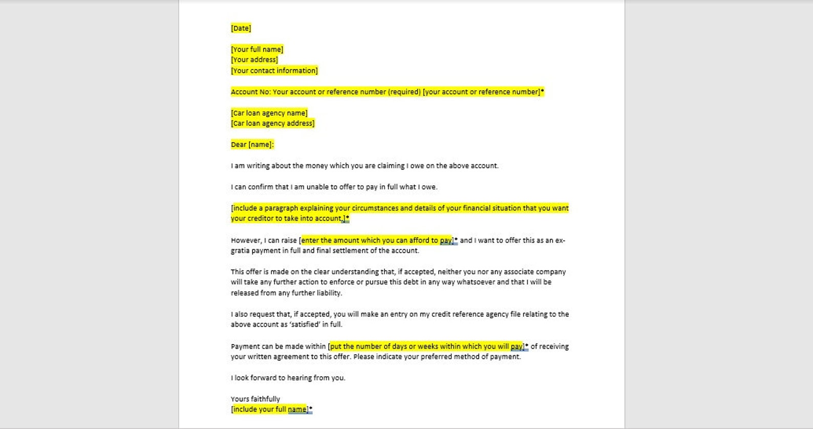 Car Debt Settlement Letter Template Debt Settlement Letter Debt