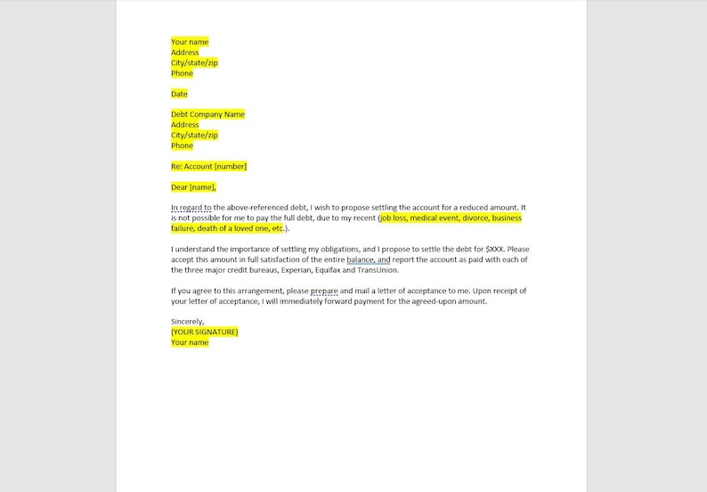 Letter Template For Debt Settlement Negotiation Free Samples in PDF