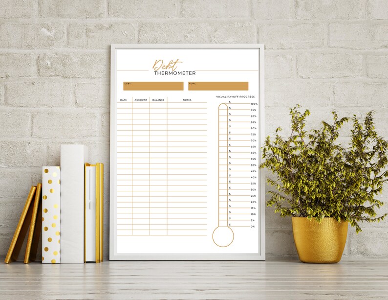 Debt Thermometer Printable Debt Tracker Printable Finance Etsy