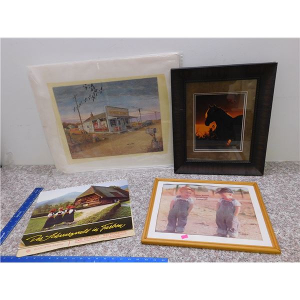 Lot of 4 Puzzle Framed Horse Photo Children Farming Calendar from 1971