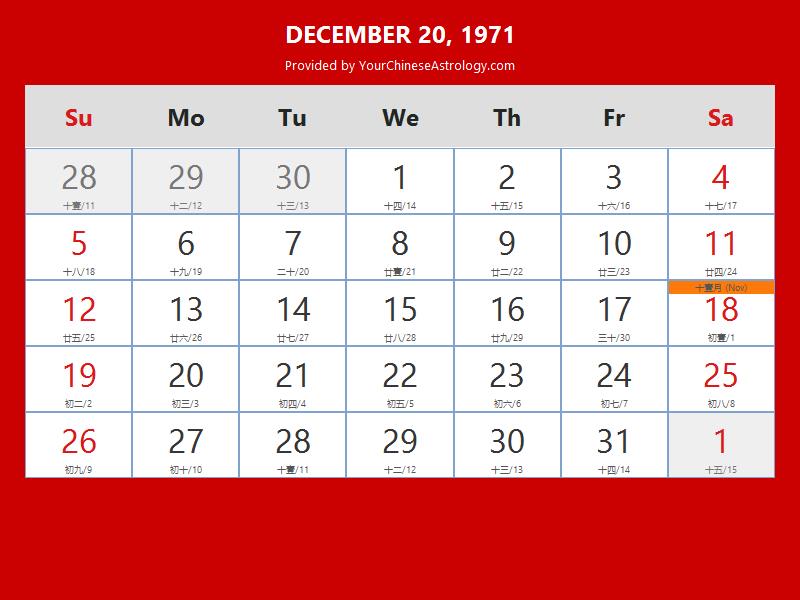 Chinese Calendar Dec 20 1971: Auspicious Things to Do and Hours Bazi