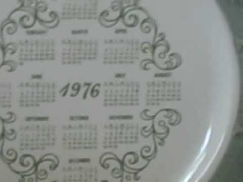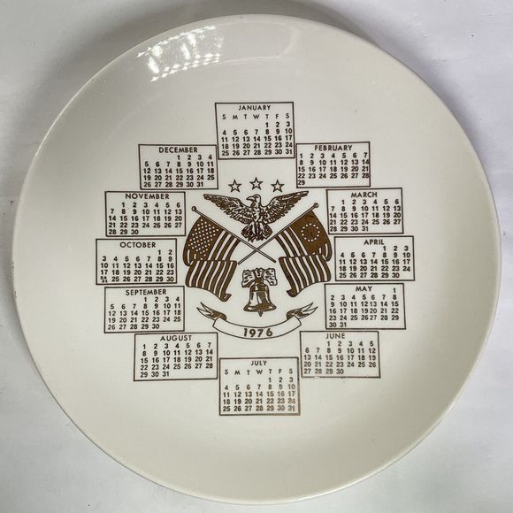 Dining 1976 Calendar Plate Gold Trim On Off White China Us Flags