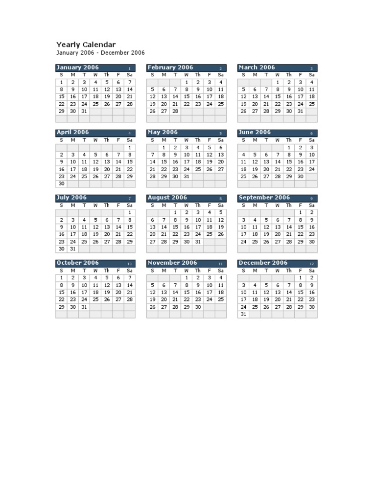 Free 2006 Calendars in PDF Word Excel