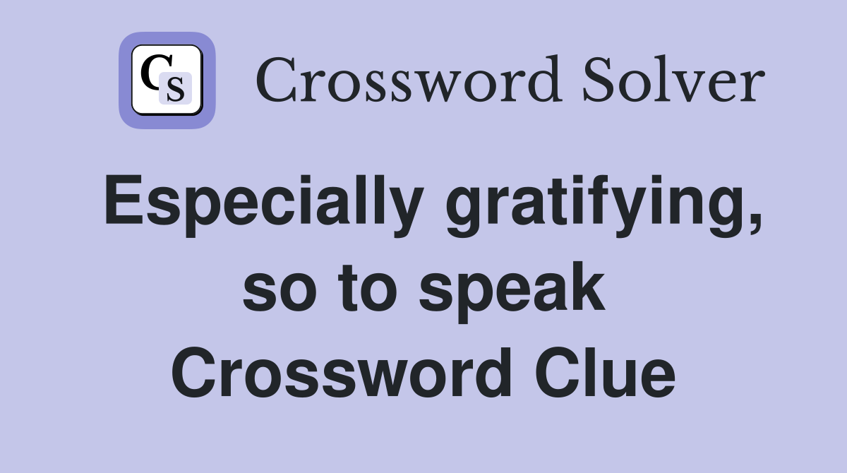 Especially gratifying so to speak Crossword Clue Answers Crossword