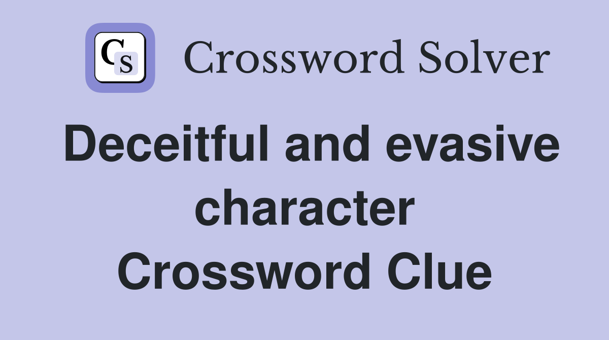 Deceitful and evasive character Crossword Clue Answers Crossword Solver