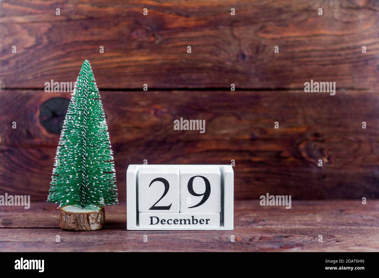 December 29 on the calendar Calendar with a small Christmas tree on a