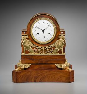 Clocks: A mahogany cartonnier clock indicating the Republican calendar