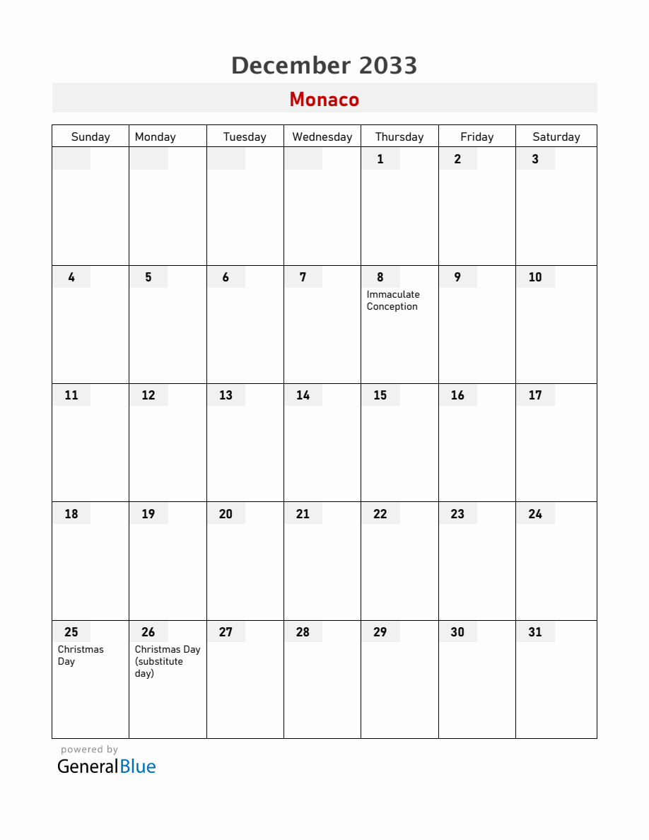 DECEMBER 2033 CALENDAR OF THE MONTH: FREE PRINTABLE DECEMBER CALENDAR