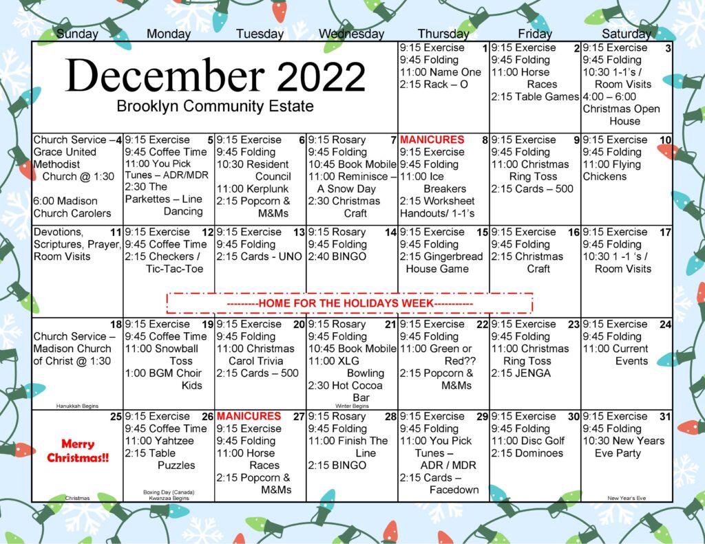 December Activity Calendar For Seniors Printable And Enjoyable Learning