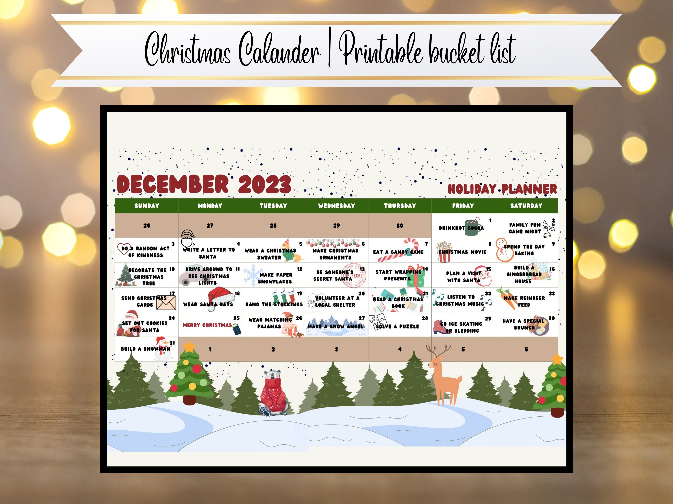 Winter Bucket List Christmas Calendar Countdown Kids Love Natural
