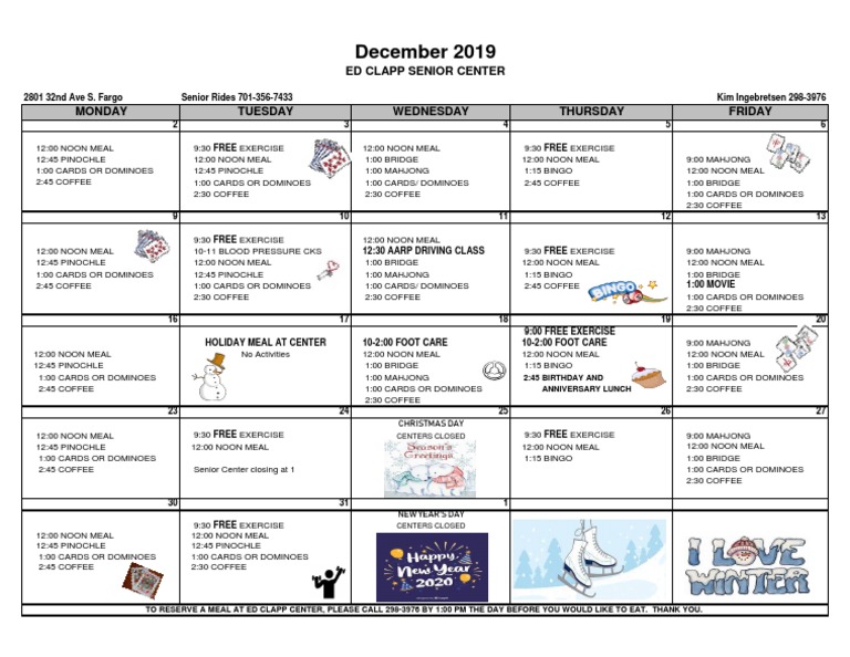 December Activity Calendar Ed Clapp PDF Observances Holidays
