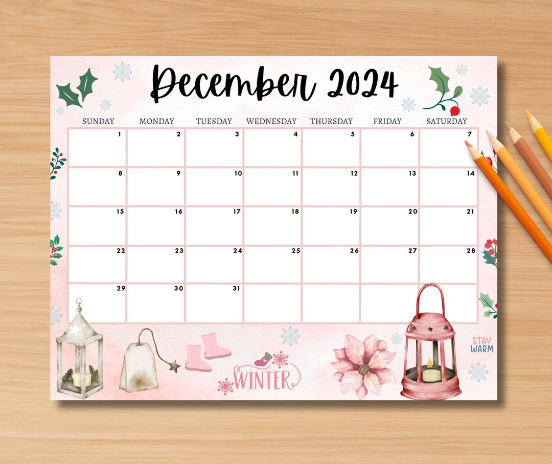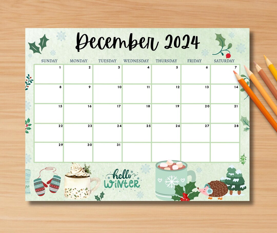 EDITABLE December 2024 Calendar Cute Winter 2024 Planner PDF Cute