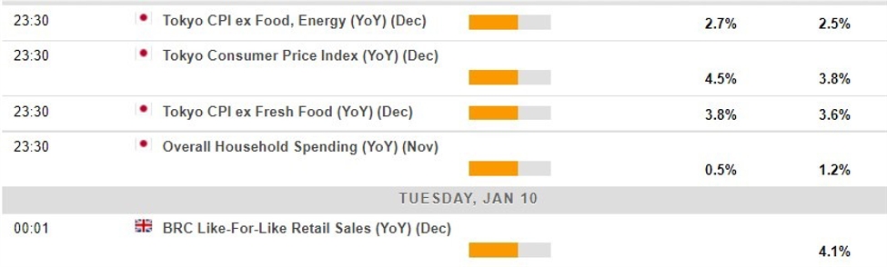 Economic calendar in Asia for Tuesday 10 January 2023 Tokyo