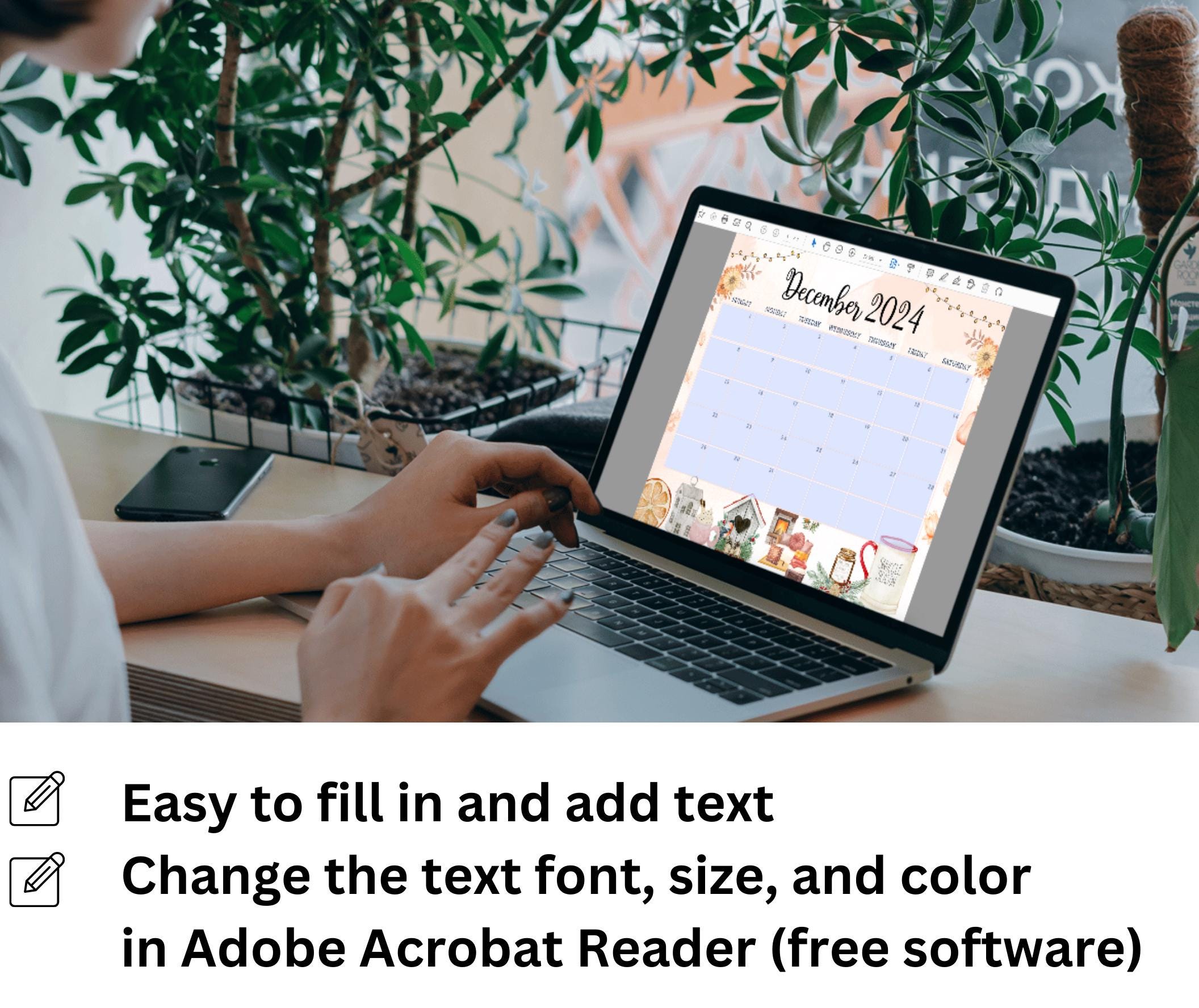 Editable December 2024 Calendar Digital Monthly Calendar Printable