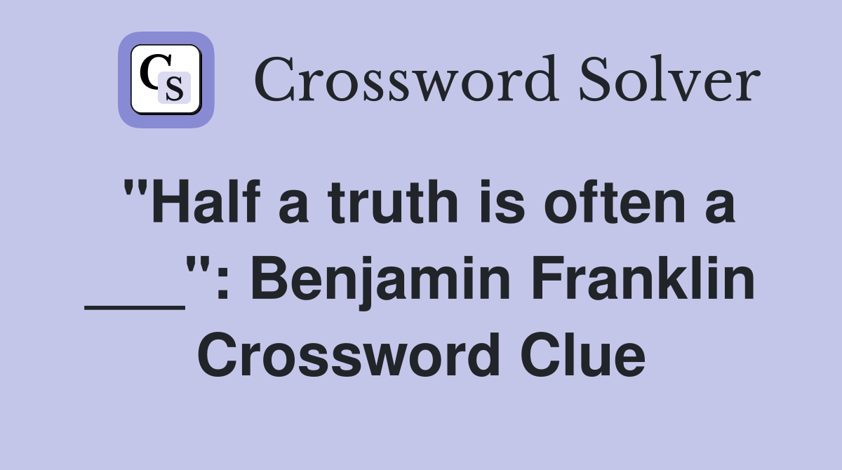 quot Half a truth is often a quot : Benjamin Franklin Crossword Clue