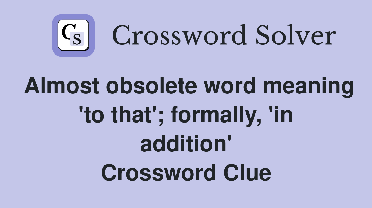 Almost obsolete word meaning #39 to that #39 formally #39 in addition