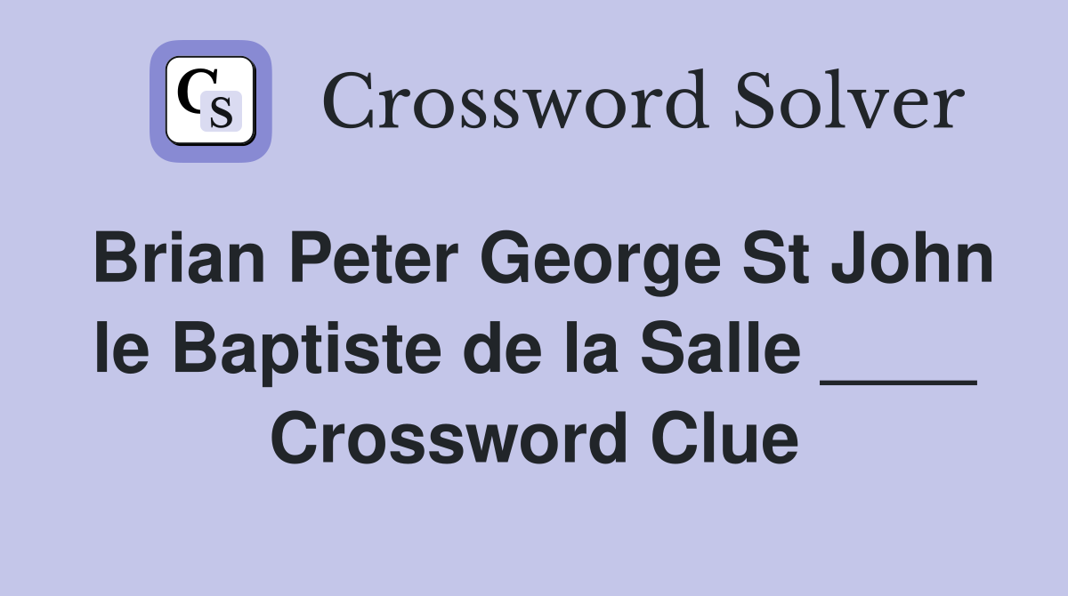 Brian Peter George St John le Baptiste de la Salle Crossword