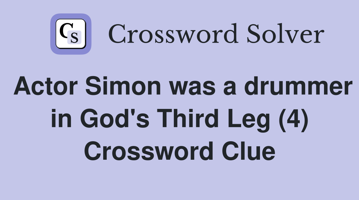 Actor Simon was a drummer in God #39 s Third Leg (4) Crossword Clue