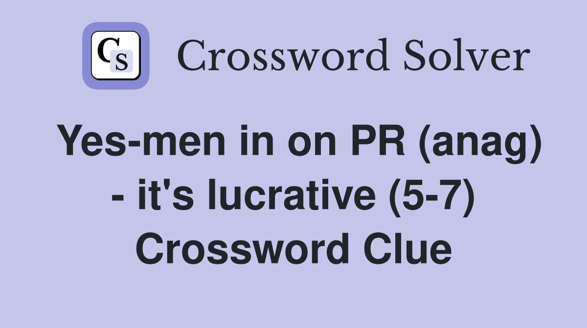 Yes men in on PR (anag) it #39 s lucrative (5 7) Crossword Clue Answers