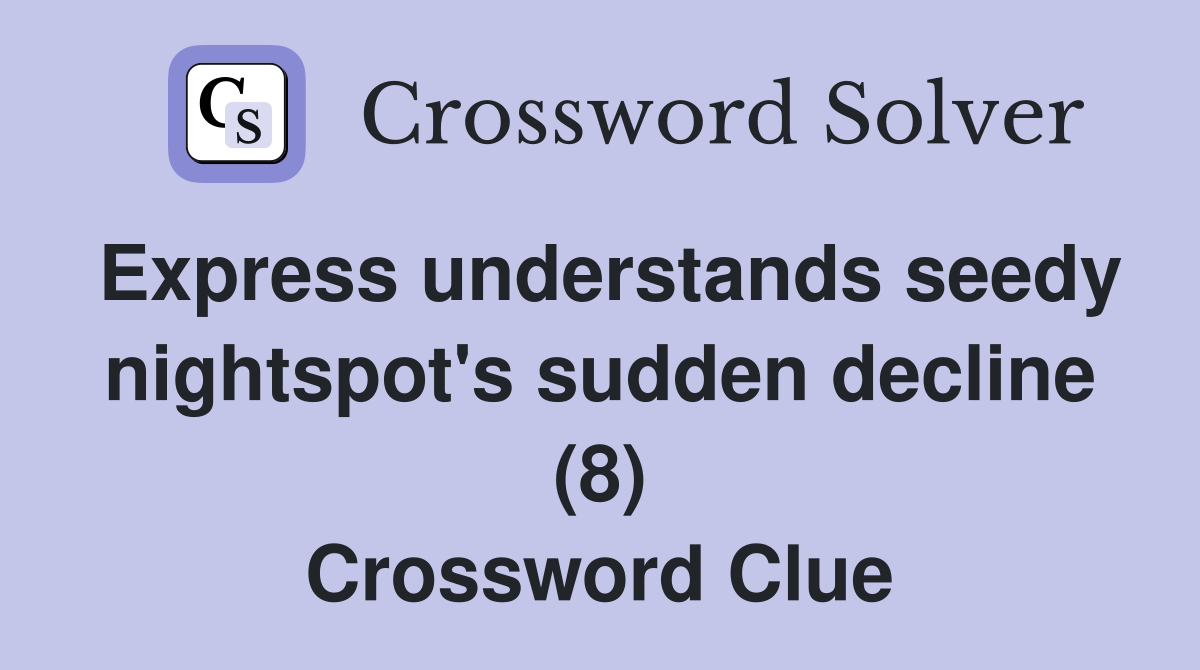 Express understands seedy nightspot s sudden decline (8) Crossword
