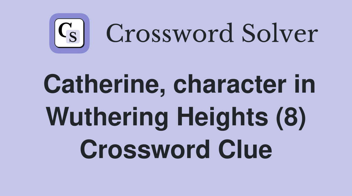 Catherine character in Wuthering Heights (8) Crossword Clue Answers