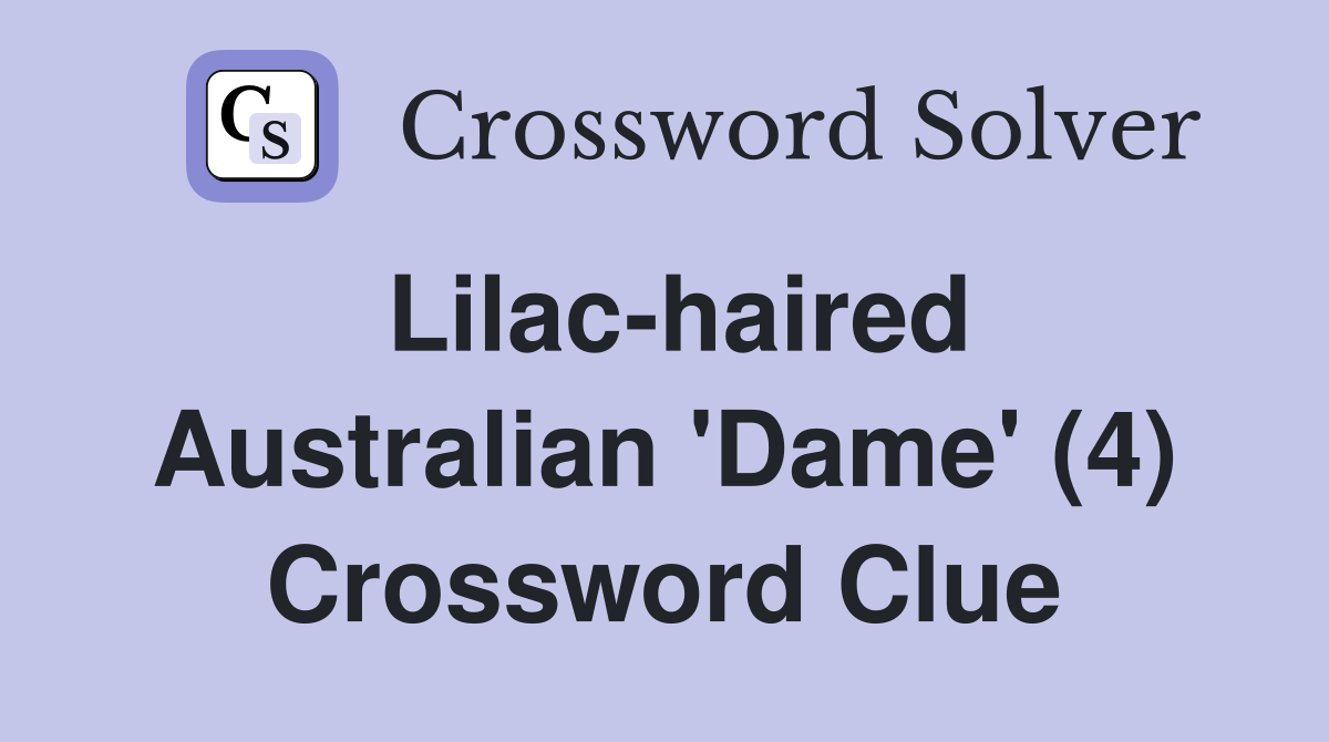 Lilac haired Australian #39 Dame #39 (4) Crossword Clue Answers Crossword