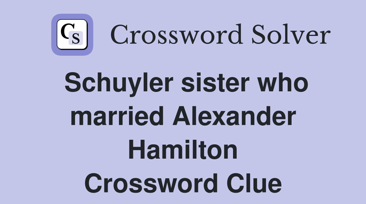 Schuyler sister who married Alexander Hamilton Crossword Clue Answers