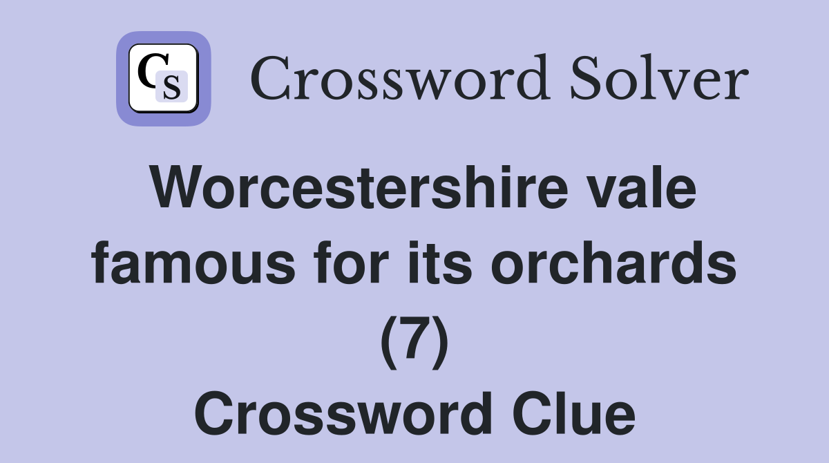 Worcestershire vale famous for its orchards (7) Crossword Clue