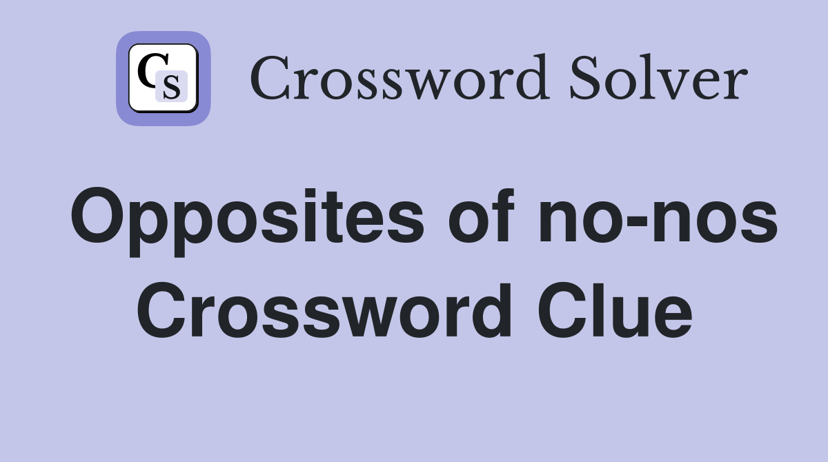 Opposites of no nos Crossword Clue Answers Crossword Solver