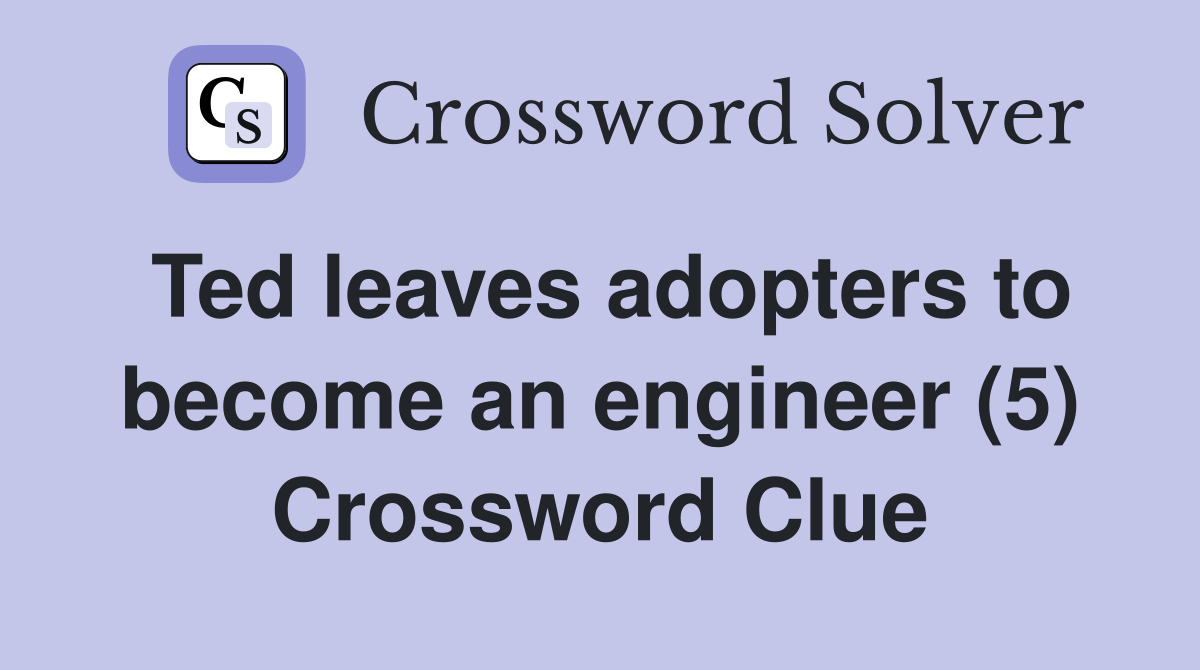 Ted leaves adopters to become an engineer (5) Crossword Clue Answers