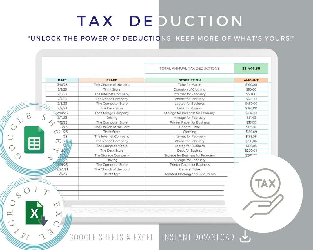 Tax Deduction Tracker Template for Excel Google Sheets tax Deduction
