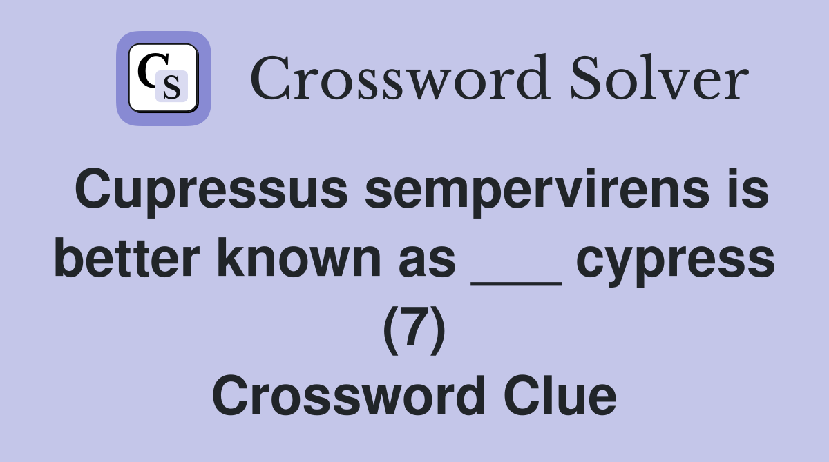 Cupressus sempervirens is better known as cypress (7) Crossword