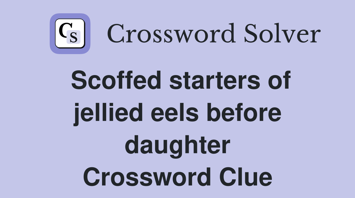 Scoffed starters of jellied eels before daughter Crossword Clue