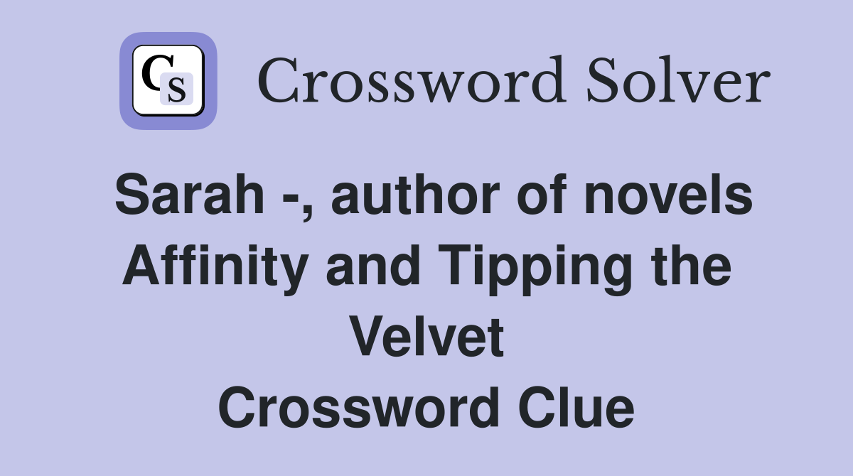 Sarah author of novels Affinity and Tipping the Velvet Crossword