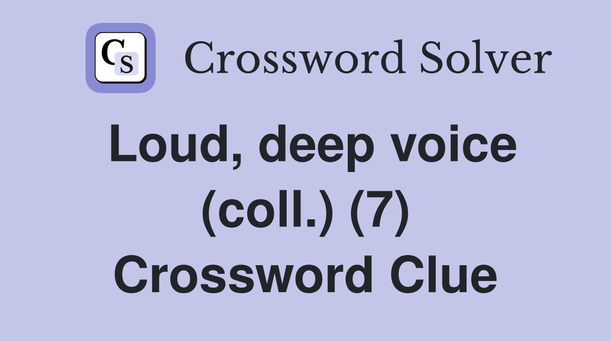 Loud deep voice (coll ) (7) Crossword Clue Answers Crossword Solver