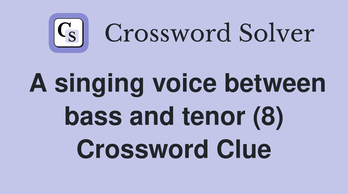 A singing voice between bass and tenor (8) Crossword Clue Answers