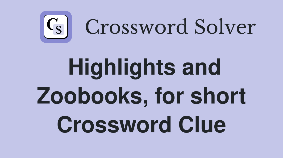 Highlights and Zoobooks for short Crossword Clue Answers Crossword