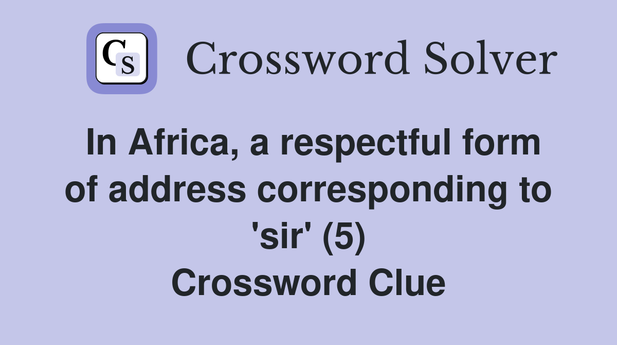In Africa a respectful form of address corresponding to #39 sir #39 (5