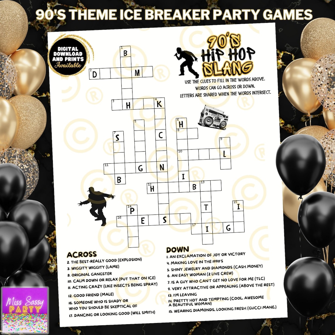 90 #39 s Hip Hop Crossword Puzzle Old School Birthday/baby Shower Group