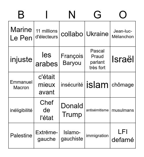 Extrême droite bingo Card