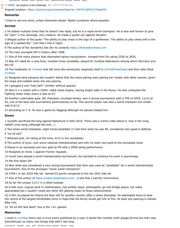 Chess crossword 2022 01 (questions in comments) : r/chess