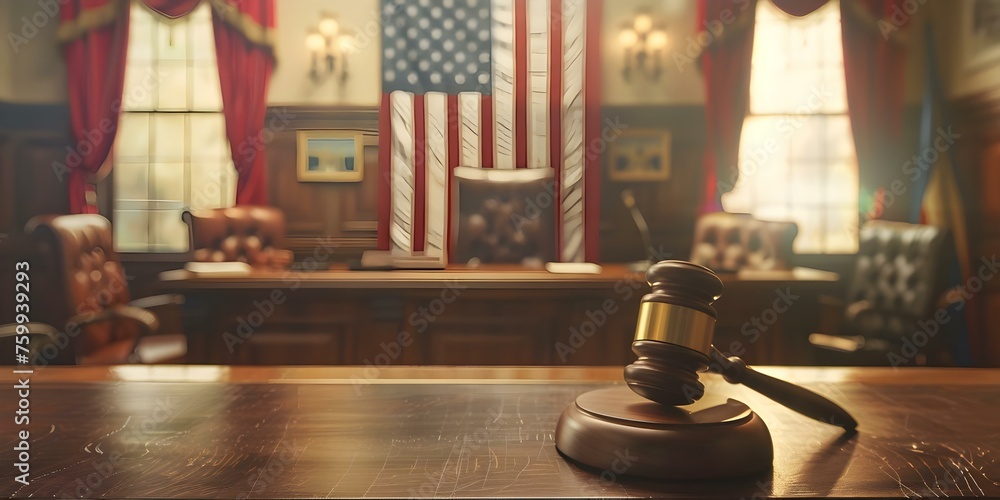 American courtroom with United States flag judges gavel and justice
