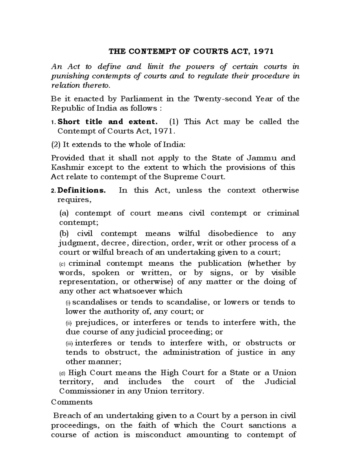 Contempt of court act fdggf THE CONTEMPT OF COURTS ACT 1971 An Act