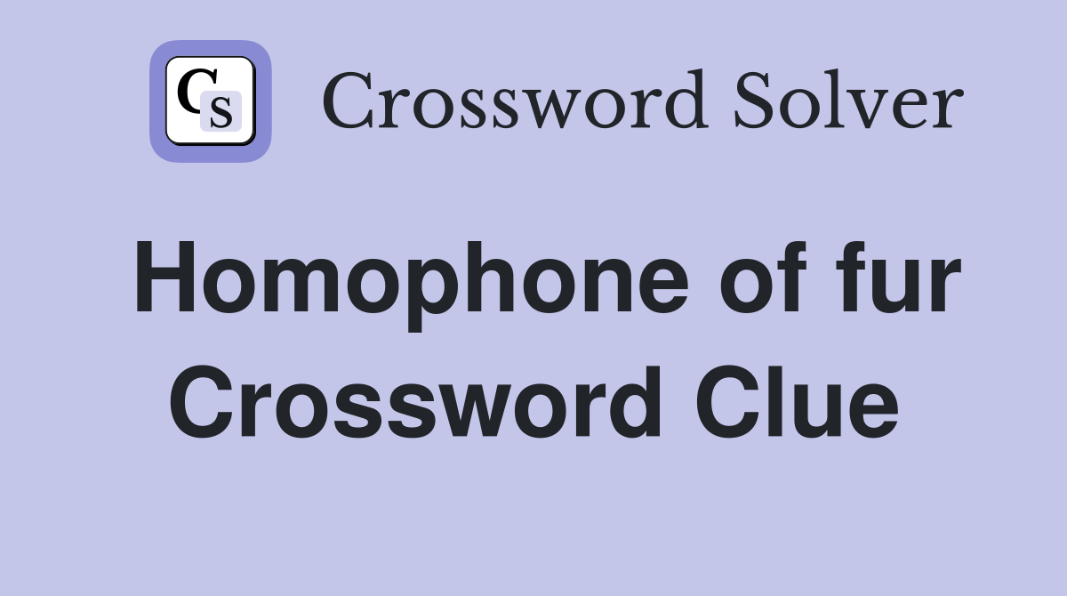 Homophone of fur Crossword Clue Answers Crossword Solver