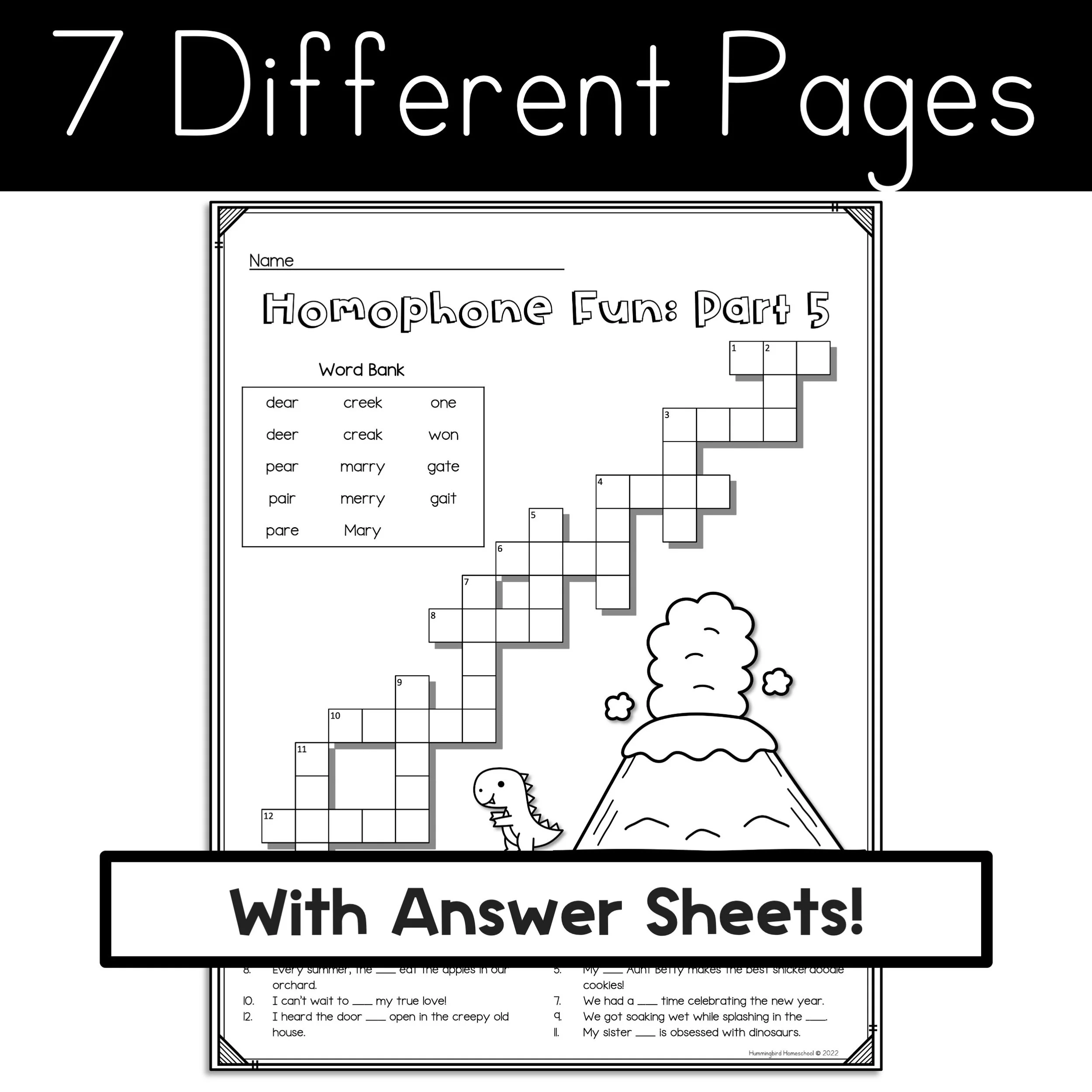 Homophone Crossword Puzzles with Answers Hummingbird Homeschool