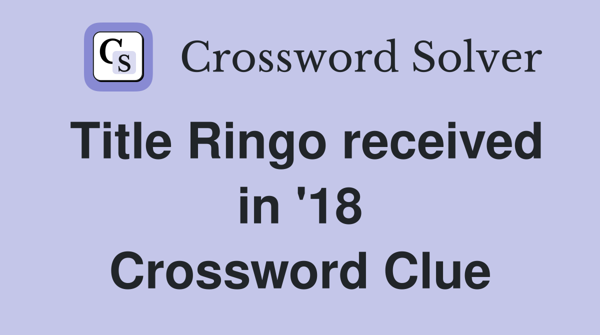 Title Ringo received in #39 18 Crossword Clue Answers Crossword Solver
