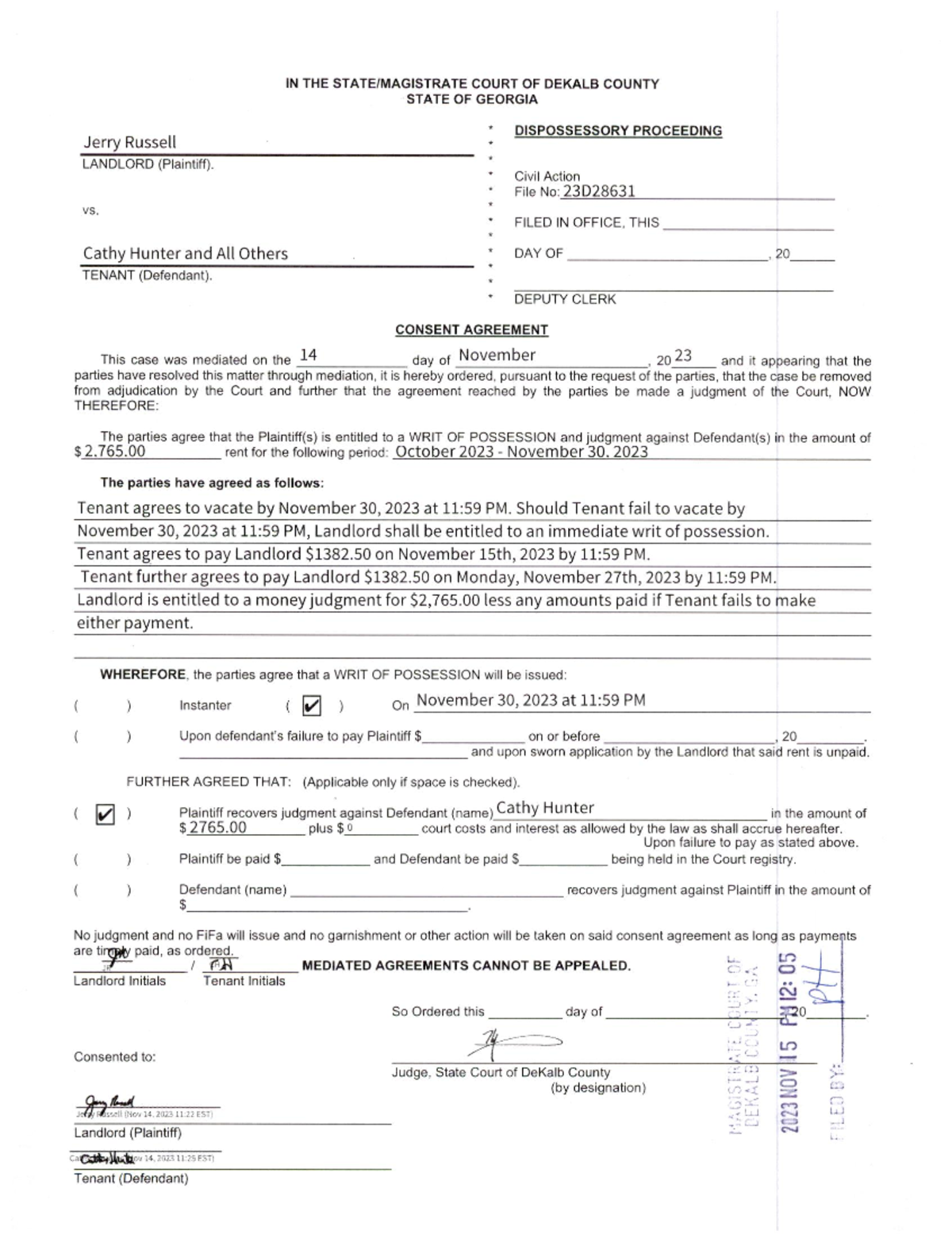 Dispossessory Actions DeKalb Magistrate Court CountyForms com