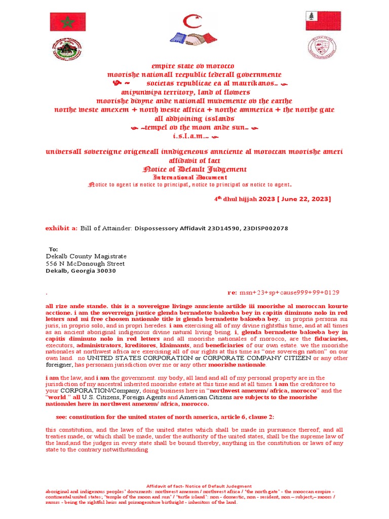 Default Notice For Avernment of Jurisdiction Quo Warranto Dekalb County