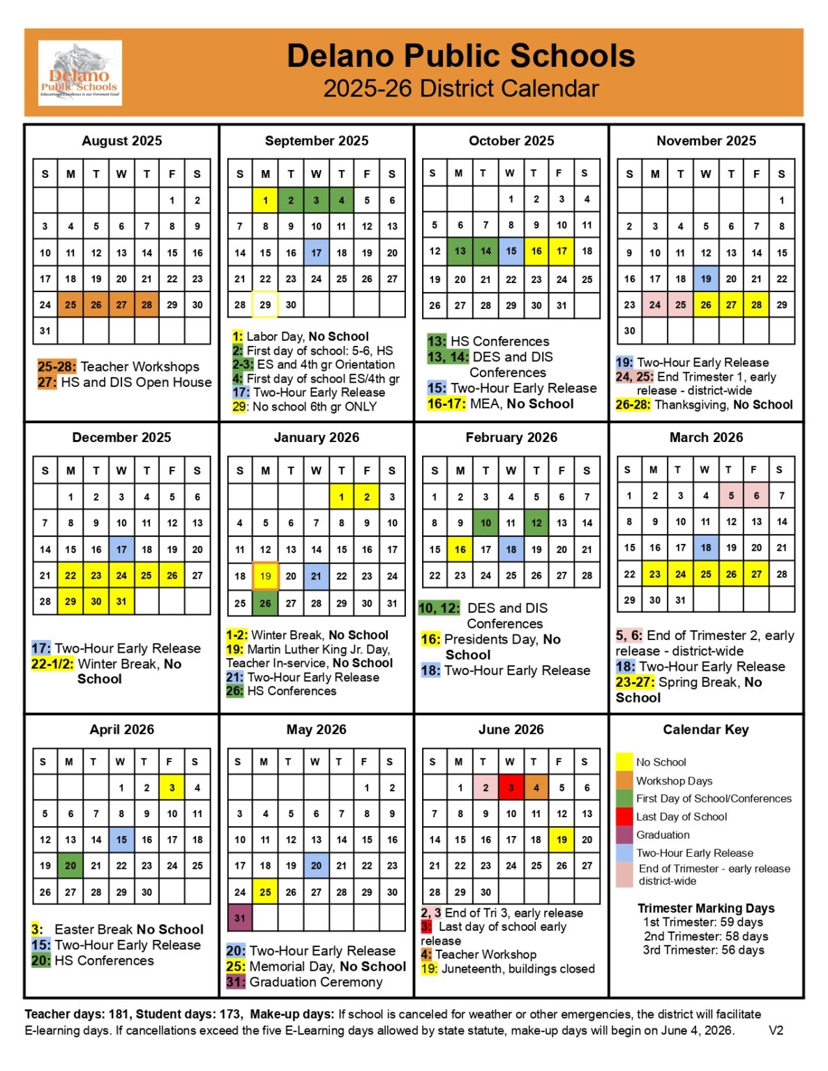 Delano School Calendar