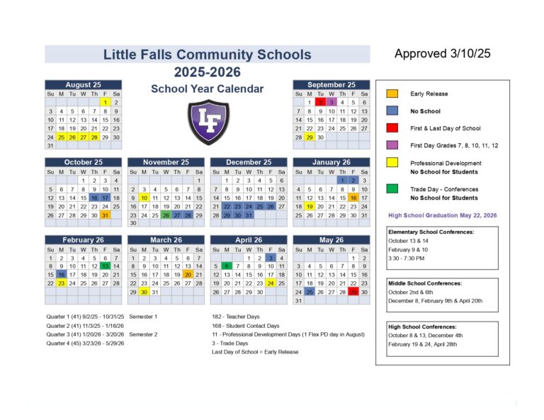 Little Falls Community Schools MN Calendar 25 26 Revised PDF EduCounty